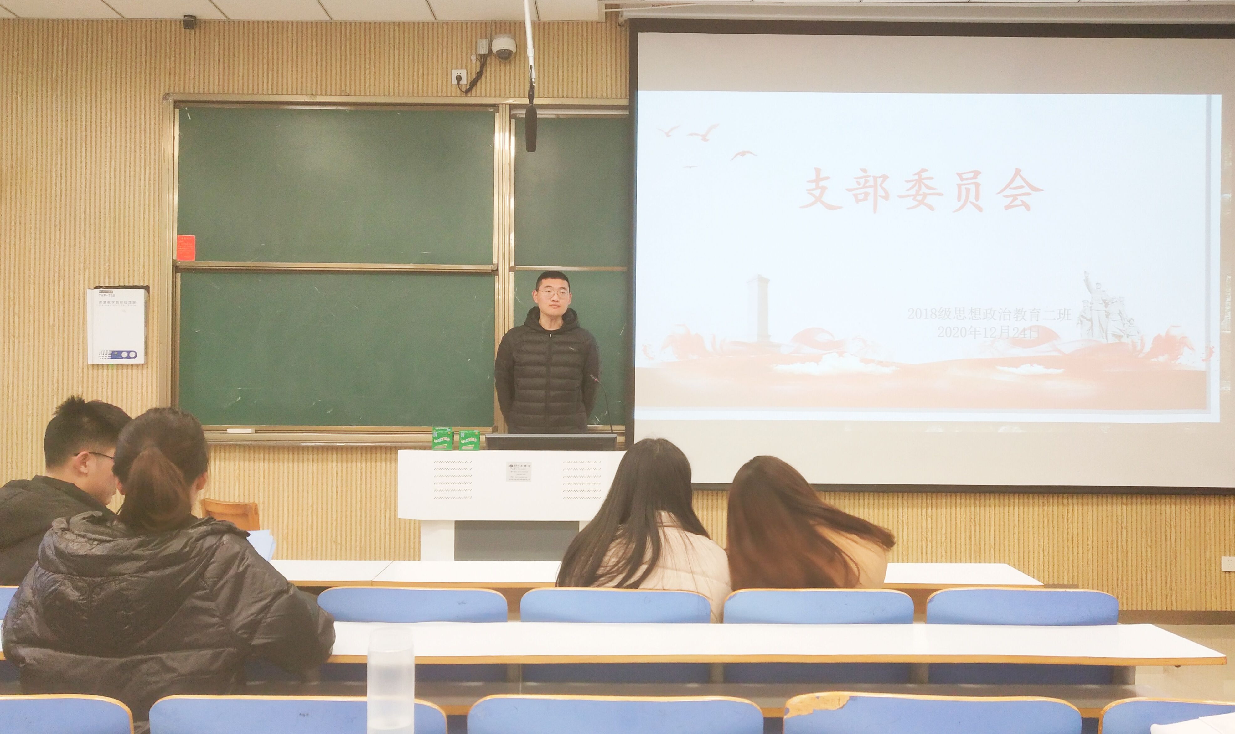 12月24日下午,pp电子官网2018级思想政治教育第二团支部在社科楼515教室顺利开展支部委员会。会议由2018级思想政治教育第二团支部副书记杨康主持。