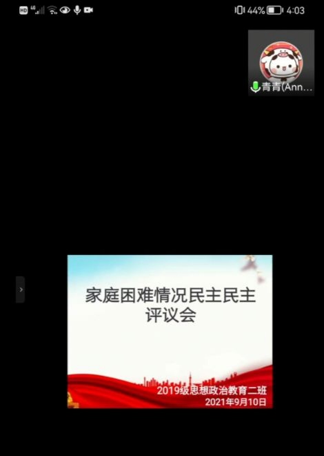 为认真做好家庭经济困难学生的认定工作,切实保证学院各项资助政策的真正落实,9月10日下午,pp电子官方网站2019级思想政治教育二班通过腾讯会议线上平台召开民主评议会。pp电子官方网站团委老师陶青青及2019级思想政治教育二班民主评议会小组成员共同参会。本次会议由班长吕昂主持。