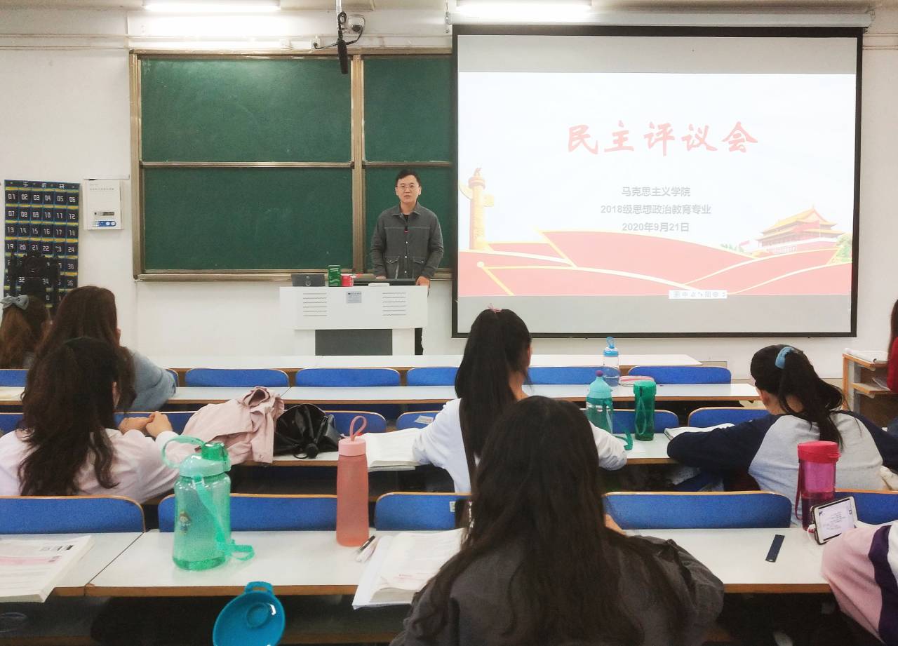 9月21日下午,pp电子官方网站2018级团支部在社科楼514教室顺利召开民主评议会。pp电子官网团委书记曹栋及2018级团支部全体成员共同参加了此次会议。会议由2018级思想政治教育团支部书记靳雨露、黄子晋主持。
