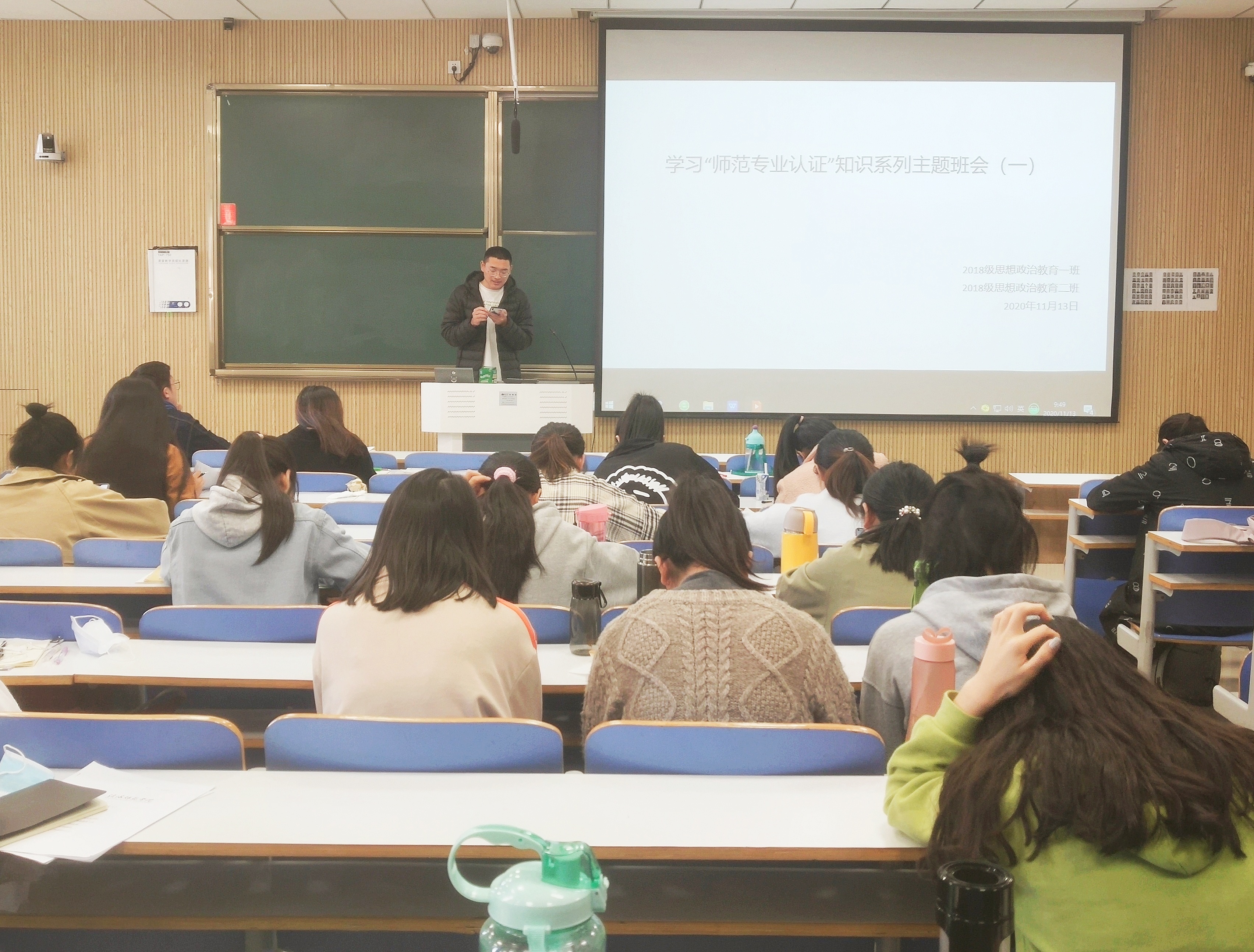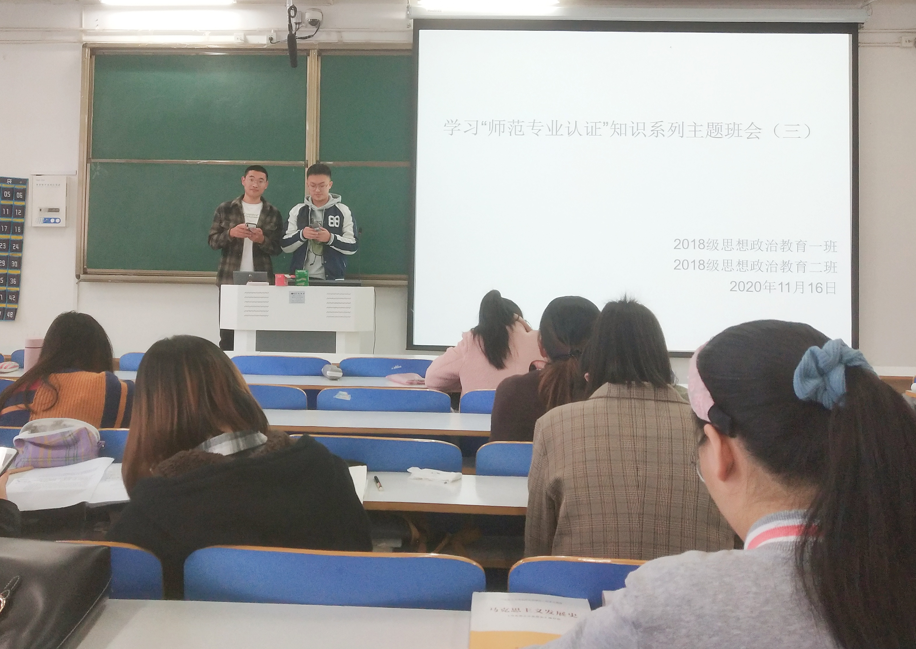 11月13日——11月16日,pp电子官方网站2018级思想政治教育二班在社科楼515教室顺利开展学习“师范专业认证”知识系列主题班会。会议由班长杨康主持。