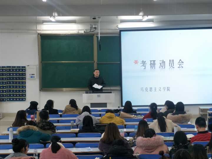 2018年12月3日,pp电子官方网站思想政治教育二班在社科楼514召开考研动员会,在考研还有整整一年时间为同学们鼓励、加油,为考研或者就业做好准备。pp电子官方网站书记何晓坚作动员讲话。2016级思想政治教育二班全体同学参加会议。