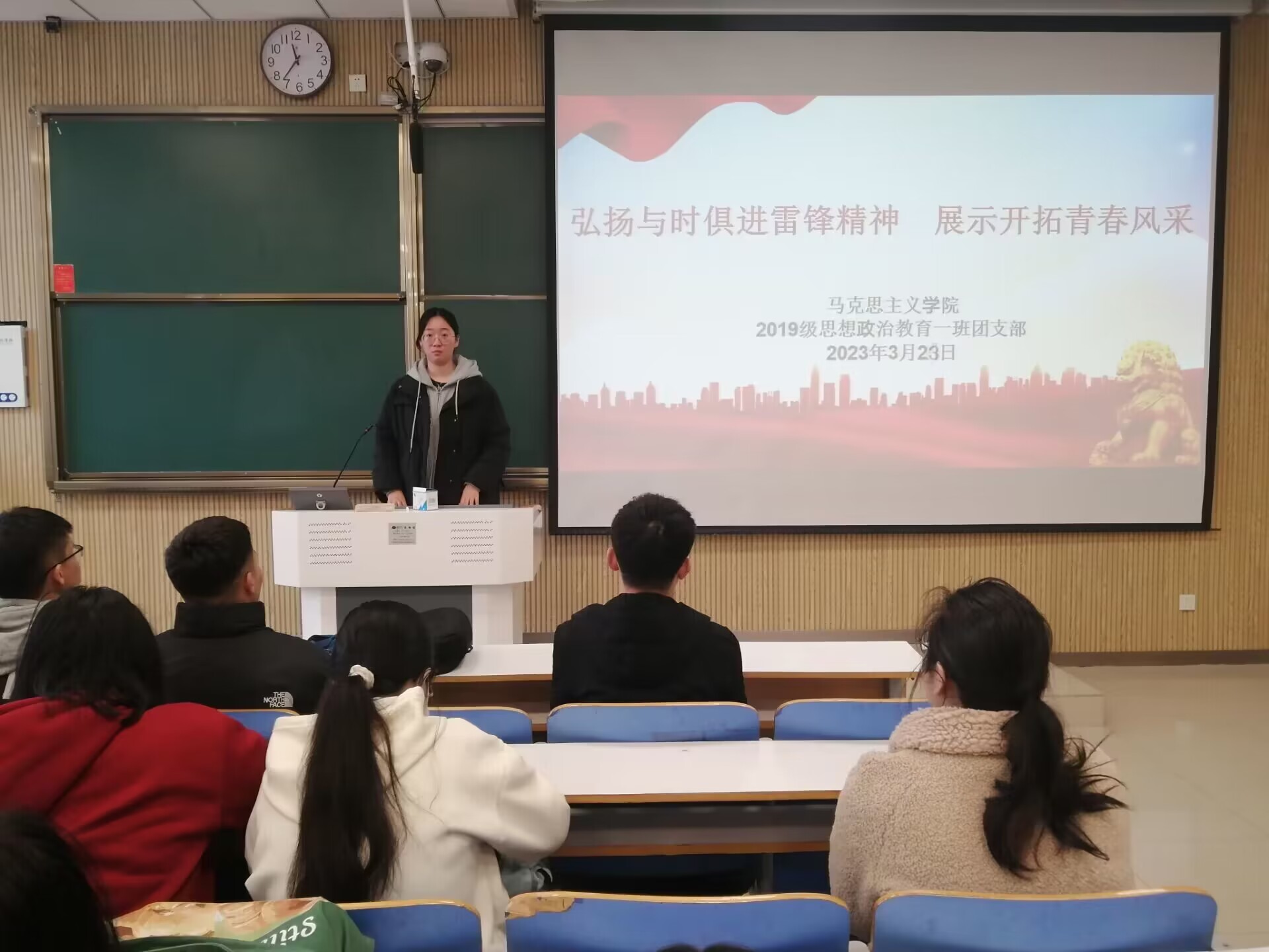 3月23日上午,pp电子官方网站2019级思想政治教育一班在社科楼515教室开展“弘扬与时俱进雷锋精神 展示开拓青春风采”主题团课。pp电子官方网站2019级思想政治教育全体成员参加本次会议,会议由班长贾子漪主持。
