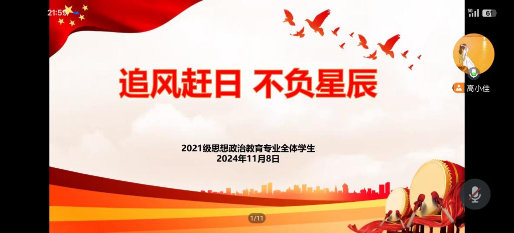 11月8日晚上,pp电子官方网站2021级思想政治教育专业全体成员在线上召开“追星赶月,不负星辰”主题班会。2021级思想政治教育专业全体成员和辅导员高小佳老师参加本次班会。会议由辅导员高小佳主持。